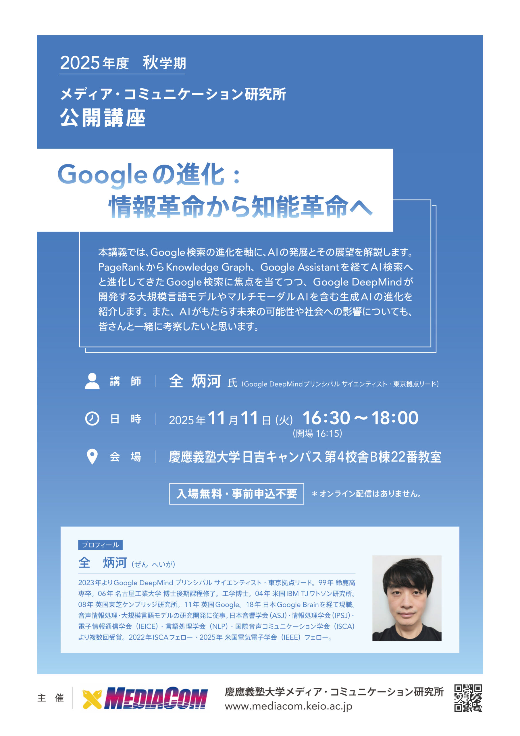 2025年度秋学期メディアコム公開講座「Google の進化:情報革命から知能革命へ」
